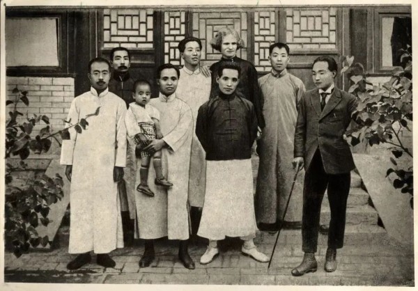鲁迅在北京八道湾十一号与周作人、爱罗先珂等人合影
