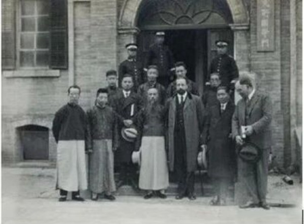 1926年,瑞典王储阿道夫夫妇访华时期,安特生博士前往北京大学研究所国学门拜访中国学者时合影。前排右一为安特生,前排左二为黄文弼,后排右二为徐炳昶。(图源自收藏家,授权使用)