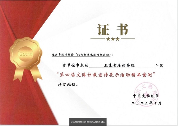 我馆“三味书屋读鲁迅”项目获“第四届文博社教宣传展示活动精品案例”奖
