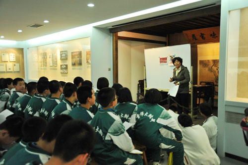 鲁迅的三味书屋在中国可谓家喻户晓,清明前夕,我馆组织了北京市宏庙小学、首都师范大学附属中学、北京市35中学、陈经纶中学等京城多个中小学的学子,走进三味书屋,和鲁迅做“同学”,为我馆的传统系列活动——“清明时节诵鲁迅”增添了一份亲切感。