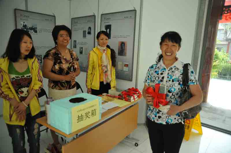 嘉年华当然少不了抽奖活动。为了庆祝这个和“一百”密切相关的日子,我馆特别设立了“纪念鲁迅进京百年、中国博物馆百年‘百分百’抽奖活动”。我们把鲁迅进京到今天的年份作为抽奖号码,投入抽奖箱,设立了一、二、三等奖和参与奖,做到让观众百分百的中奖,百分百的满意。观众参加抽奖活动十分踊跃,一个小姑娘代替妈妈抓了个二等奖,母子俩都开心的笑了,奖品中的书籍、光盘,成为获奖者和鲁迅相遇的一个驿站,让他们收获文化的快乐。
