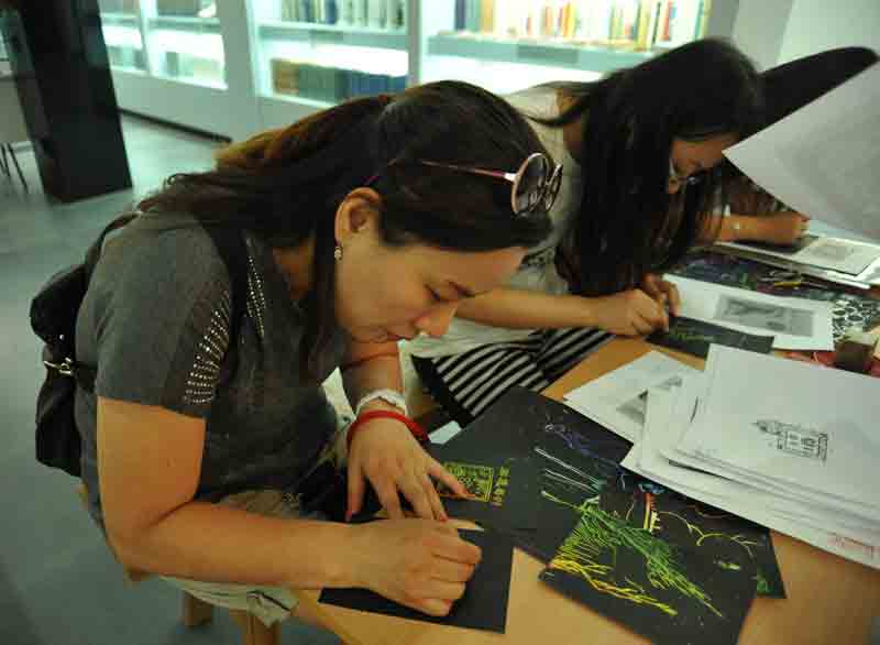 “集点反奖活动”也经常是“嘉年华”参与度最高的活动,有鲁迅的嘉年华也有这样的活动,不过它更有鲁迅的特色——“有奖集印活动”。鲁迅一生收集、使用了很多的印章,里边不乏大家之作。我们在鲁迅生平陈列厅、鲁迅旧居设置了几个“集印点”,邀请观众在我们免费发放的“鲁迅藏笺谱便笺本”上收集印谱,即加盖的鲁迅印章,通过集齐的印谱兑换小礼品。观众对收集印谱的兴趣甚至超过了兑换小礼品。兑换活动结束后仍有很多观众到集印点盖章,他们很多人表示,这些印谱本身就是最好的纪念品。