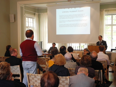 这次年会的主题是“文学博物馆的地域特性”,有俄罗斯、德国、意大利、匈牙利、克罗地亚、拉脱维亚、瑞典、芬兰、挪威等十几个国家的50多位代表与会。在三天的学术交流会上,各国代表围绕文学博物馆特点、发展方向和业务合作等议题进行了广泛的交流。设在佛罗伦萨的意大利全国故居管理协会的负责人介绍了该国有关文学家艺术家的纪念设施及该组织在整合、推广和共享资源方面的管理经验;德国格林兄弟博物馆馆长以格林兄弟与北欧诸国的关系为线索,追溯了格林兄弟童话作品的生成过程及对北欧诸国文学艺术的影响;俄罗斯托尔斯泰博物馆馆长介绍了托尔斯泰私人藏书的价值及其被联合国教科文组织列为人类文化记忆遗产的经过;俄罗斯国家人道主义教育中心的负责人介绍了奥斯特洛夫斯基纪念馆在帮助残疾人克服困难、自强自立过程中发挥的独特作用。北京鲁迅博物馆副馆长黄乔生以“一人多馆:中国文学博物馆的一个特色”为题,以杜甫和鲁迅为个案,介绍了在重文思想影响下中国为一个文学家建造多个纪念设施的传统及当前中国文学博物馆、纪念馆建设热潮中出现的问题,引起与会代表的关注。此种现象并非中国独有。俄罗斯莫斯科普希金博物馆馆长介绍,在全俄罗斯,有14个普希金纪念设施,还有多家托尔斯泰纪念设施。大家就中国博物馆的体制、文学博物馆的原真性、观众需求与纪念设施数量的关系等问题展开了热烈讨论。