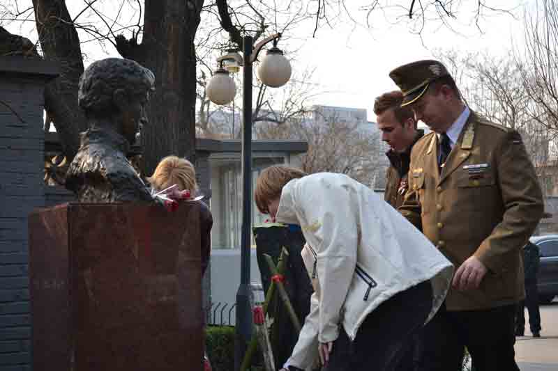 匈牙利大使库绍伊·山多尔阁下在献花仪式上致辞。匈牙利大使馆奇丽副馆长致辞。随后,大使阁下与大使馆全体工作人员向伫立在鲁迅博物馆院内的裴多菲铜像敬献鲜花。献花仪式在肃穆的气氛中结束。