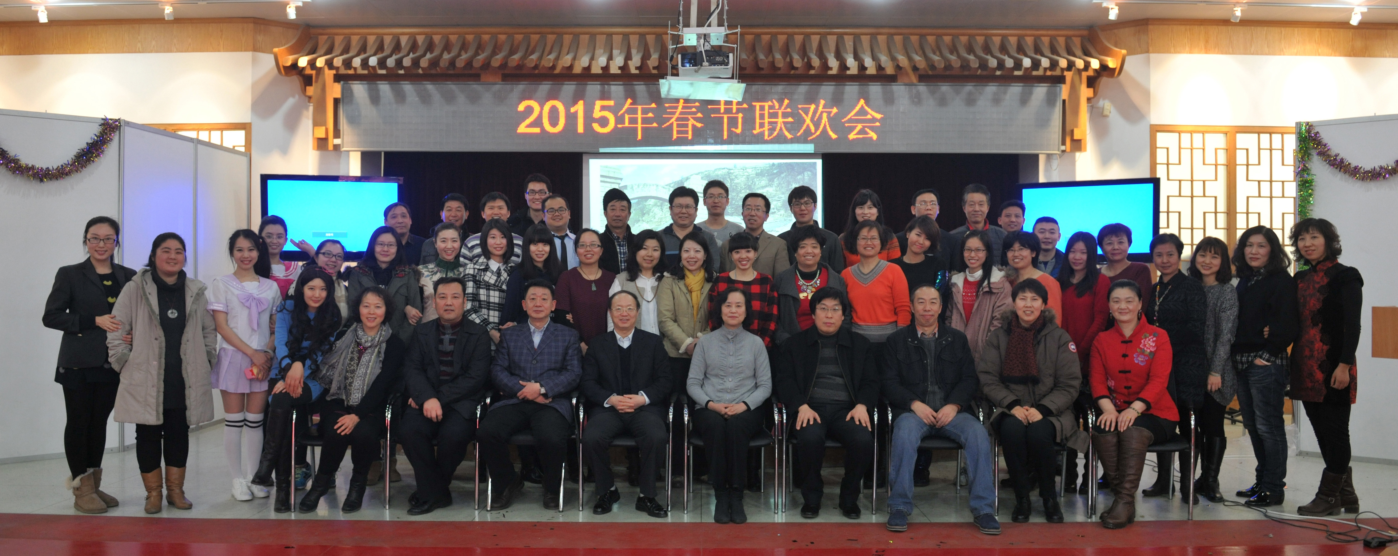 2015年2月10日上午,北京鲁迅博物馆(新文化运动纪念馆)全体职工欢聚一堂、欢歌笑语,在北京鲁迅博物馆多功能厅举行了2015年春节联欢会。联欢会上,馆长助理李金光同志代表工会为全体职工送上了新年祝福。郭俊英馆长为本命年的老同志赠送了羊年纪念品。各部门职工表演了舞蹈、歌曲串烧、京剧、口技脱口秀等16个自编自排的精彩节目,演出期间还穿插了抽奖环节,馆领导及2015年即将退休的3名职工分别抽了奖,把联欢会推向了高潮。联欢会结束时,为2014年优秀职工颁发了奖品。最后,馆领导与全体职工一起合影留念。