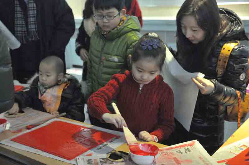 2015年2月17日,在辞旧迎新之际,北京鲁迅博物馆(北京新文化运动纪念馆)举办了“看年画过大年”亲子文化教育活动。活动内容主要有:赏年画、印年画、写福字、送春联、画脸谱、捏面人等,国家“非物质文化遗产保护项目”泥塑彩绘脸谱代表性传承人佟秀芬女士和中国民间工艺美术大师、面塑艺术家张宝琳先生的到来为此次活动增添了不少光彩,他们现场展示精湛技艺和优秀作品,教授孩子们捏面人、画脸谱。孩子们在老师的带领下,倾听老师讲述鲁迅故事和木刻运动、鲁迅和传统木板水印技艺,用传统木板水印拓印鲁迅藏外国版画名作模板,体验现代版画和古老的木板水印技艺交相辉映的魅力。