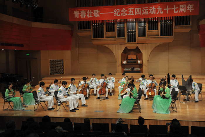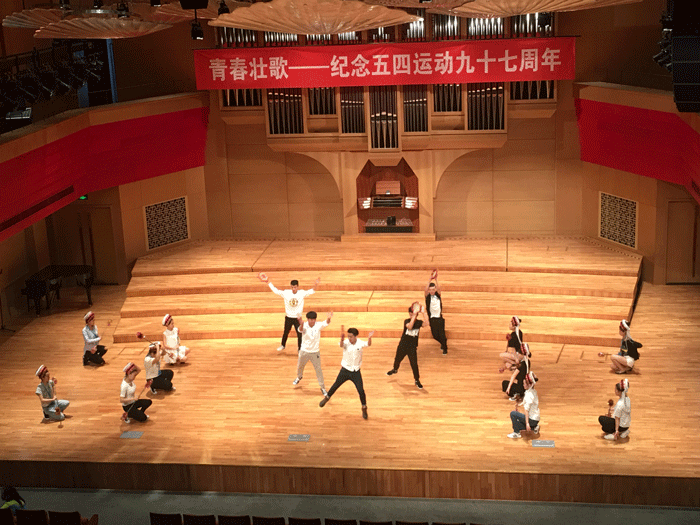 回眸峥嵘岁月,肩负振兴重任。由我馆主办的专场文艺演出——《青春壮歌——纪念五四运动九十七周年》在北京第三十五中学音乐厅隆重举行。此次文艺汇演结合了舞台剧、诗朗诵、歌舞、器乐演奏等多种形式,带领观众走进了五四运动和它带来的狂飙突进的时代。我馆青年积极参与演出筹备工作,并取得了圆满成功。