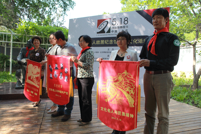 围绕着今年国际博物馆日的主题——“博物馆与文化景观”,在郭沫若纪念馆举行了一场“行走式”的文化景观体验活动。八家名人故居纪念馆的三大主题展览巡展也于今日启动,今年巡展将深入到京内外的社区、企事业单位、博物馆、学校和农村等地。平谷区上宅文化陈列馆、门头沟区永定河文化博物馆和顺义区牛栏山第一中学作为巡展单位代表接受了巡展旗帜。