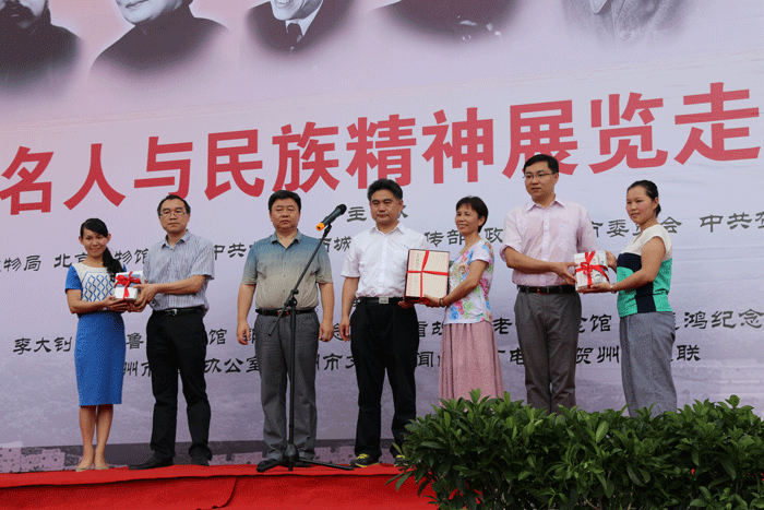 “文化名人与民族精神”展览走进贺州活动由北京市文物局、北京博物馆学会、中共北京市西城区委宣传部、政协贺州市委员会、中共贺州市委宣传部主办,宋庆龄故居、李大钊故居、北京鲁迅博物馆、郭沫若纪念馆、茅盾故居、老舍纪念馆、徐悲鸿纪念馆、梅兰芳纪念馆和政协贺州市委员会办公室、贺州市文化新闻出版广电局、贺州市文学术联合会承办。