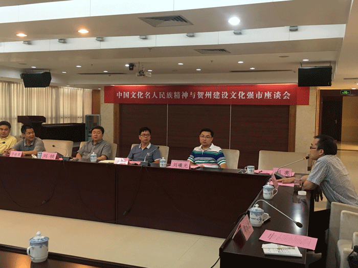 6月23日,参展团工作人员同贺州市文联代表进行座谈交流,会上肯定了“文化名人与民族精神”展览对激发当地群众爱国主义情怀和民族精神的积极作用,双方还就贺州市文化产业的发展,打造贺州市文化品牌等问题进行了讨论。