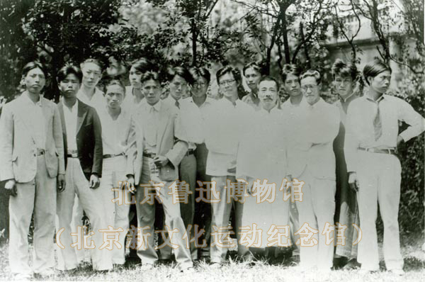 照片名称:在“一八艺社”研究所同人教授木刻后合影