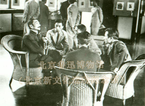 照片名称:在第二回全国木刻流动展览会上(八)