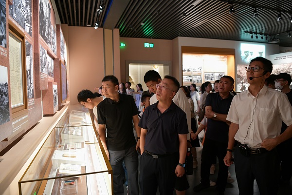 为纪念中国人民抗日战争暨世界反法西斯战争胜利80周年,扎实开展深入学习贯彻中央八项规定精神学习教育,7月22日下午,北京鲁迅博物馆(北京新文化运动纪念馆)党委组织党员干部、入党积极分子、青年团员、青年理论学习小组成员共计40余人赴中国抗日战争纪念馆开展主题党日活动,活动由党委委员、副馆长马海亭同志带队,主要参观了“为了民族解放与世界和平——纪念中国人民抗日战争暨世界反法西斯战争胜利八十周年主题展览”。